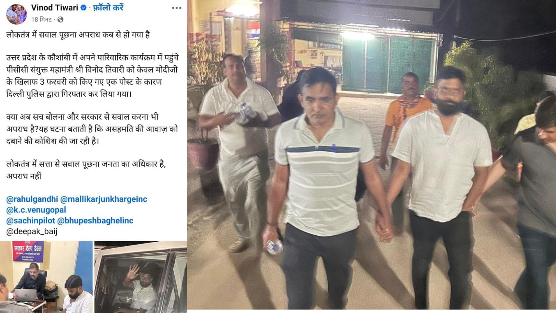 कौशांबी ब्यूरो, मोहम्मद फैज प्रधानमंत्री Narendra Modi से जुड़ा कथित एआई जनरेटेड आपत्तिजनक वीडियो सोशल मीडिया पर प्रसारित करने के आरोप में Delhi Police Special Cell ने कौशांबी जिले के एक व्यक्ति को गिरफ्तार किया है। आरोपी की पहचान विनोद तिवारी के रूप में हुई है, जो जिले के डक शरीरा गांव का मूल निवासी बताया जा रहा है। पुलिस ने उसे शुक्रवार की देर रात उसके गांव से गिरफ्तार किया। पुलिस के अनुसार विनोद तिवारी ने अपने फेसबुक अकाउंट के माध्यम से प्रधानमंत्री के खिलाफ कथित रूप से अपमानजनक और भ्रामक वीडियो साझा किया था। इस संबंध में Delhi Police की स्पेशल सेल, लोधी कॉलोनी थाने में एफआईआर संख्या 43/2026 दर्ज कर जांच शुरू की गई थी। जांच के दौरान स्पेशल सेल के हेड कांस्टेबल मोहम्मद अब्दुल्ला को सूचना मिली कि विनोद तिवारी नामक सोशल मीडिया अकाउंट से प्रधानमंत्री का एक एआई जनरेटेड वीडियो प्रसारित किया गया है। आरोप है कि वीडियो में प्रधानमंत्री के खिलाफ निंदनीय और आपत्तिजनक टिप्पणियां की गई थीं, जिनका उद्देश्य उनकी छवि को धूमिल करना और संवैधानिक पदों के प्रति लोगों में अविश्वास पैदा करना था। पुलिस ने तकनीकी जांच के दौरान संबंधित फेसबुक अकाउंट और रील के लिंक से वीडियो डाउनलोड कर उसे इलेक्ट्रॉनिक साक्ष्य के रूप में सुरक्षित कर लिया। अधिकारियों के मुताबिक इस डिजिटल सामग्री को सील्ड पेन ड्राइव में सुरक्षित रखते हुए 20 फरवरी 2026 को गवाहों की मौजूदगी में वीडियो सीजर मेमो भी तैयार किया गया। प्रारंभिक जांच में वीडियो अपलोड और प्रसारित करने में विनोद तिवारी की मुख्य भूमिका सामने आने का दावा किया गया है। इस मामले को लेकर राजनीतिक बयानबाजी भी तेज हो गई है। छत्तीसगढ़ के पूर्व मुख्यमंत्री Bhupesh Baghel ने सोशल मीडिया पर पोस्ट कर गिरफ्तारी की निंदा की है। उन्होंने कहा कि कांग्रेस नेता विनोद तिवारी को फरवरी माह में किए गए एक सोशल मीडिया पोस्ट के मामले में उस समय गिरफ्तार किया गया, जब वह अपने पिता के पिंडदान के लिए कौशांबी आए थे। बघेल ने इसे राजनीतिक कार्रवाई बताते हुए विनोद तिवारी के समर्थन में बयान दिया है। फिलहाल दिल्ली पुलिस की स्पेशल सेल पूरे मामले की गहन जांच में जुटी है और यह पता लगाने का प्रयास कर रही है कि वीडियो के निर्माण और प्रसार में कोई अन्य व्यक्ति भी शामिल था या नहीं। Post navigation जौनपुर में ‘हाई-वोल्टेज’ प्रेम ड्रामा: शादी की जिद में युवती फिर चढ़ी हाईटेंशन पोल, तीन घंटे तक चला हंगामा Banda News: अज्ञात लोगों ने एक दुकान पर लगाई आग लाखों रुपए का सामान जलकर हुआ राख