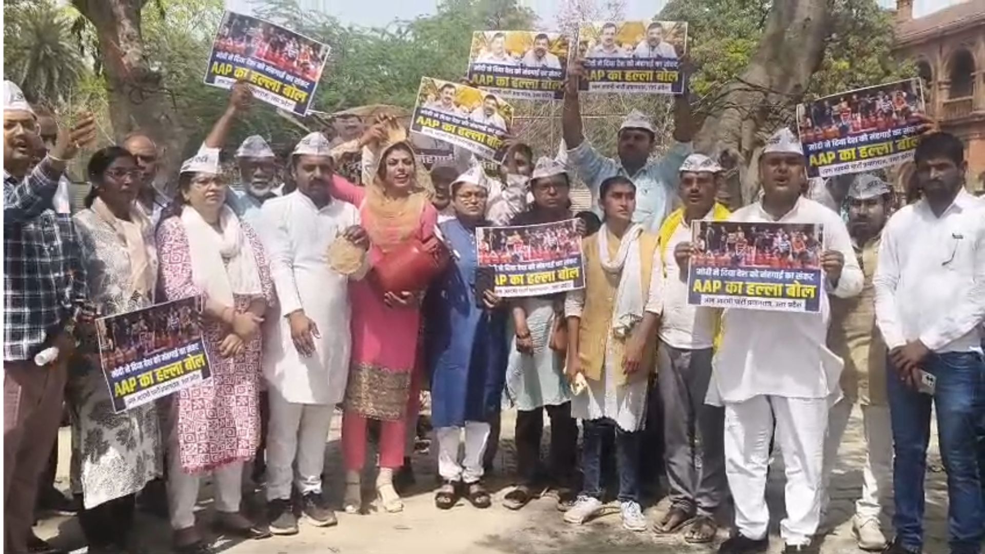देश में लगातार बढ़ती महंगाई, एलपीजी गैस सिलेंडर की कीमतों में वृद्धि और गैस सिलेंडर की बेहद किल्लत के चलते आम आदमी पार्टी के वरिष्ठ नेता व राज्यसभा सांसद संजय सिंह के आवाह्न पर केंद्र सरकार की आर्थिक नीतियों के विरोध में आम आदमी पार्टी, उत्तर प्रदेश के कार्यकर्ताओं ने शनिवार को प्रदेश के विभिन्न जिलों में जोरदार प्रदर्शन किया एवं प्रयागराज जिले में पत्थर गिरजाघर सिविल लाइन पर प्रदर्शन आप कार्यकर्ताओं ने किया और महामहिम राष्ट्रपति के नाम संबोधित ज्ञापन जिला प्रशासन को सौंपा। पार्टी कार्यकर्ताओं ने आरोप लगाया कि केंद्र की भाजपा सरकार की गलत आर्थिक नीतियों के कारण आज देश की आम जनता न केवल महंगाई और आर्थिक संकट से जूझ रही है, बल्कि गैस सिलेंडरों की भारी किल्लत के चलते एक बार फिर लाइनों में लगने को मजबूर हो गई। जिसका सबसे बड़ा बोझ गरीब और मध्यम वर्गीय परिवारों पर पड़ रहा है।